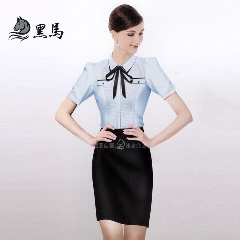 藍色標(biāo)準(zhǔn)領(lǐng)女士短袖襯衫